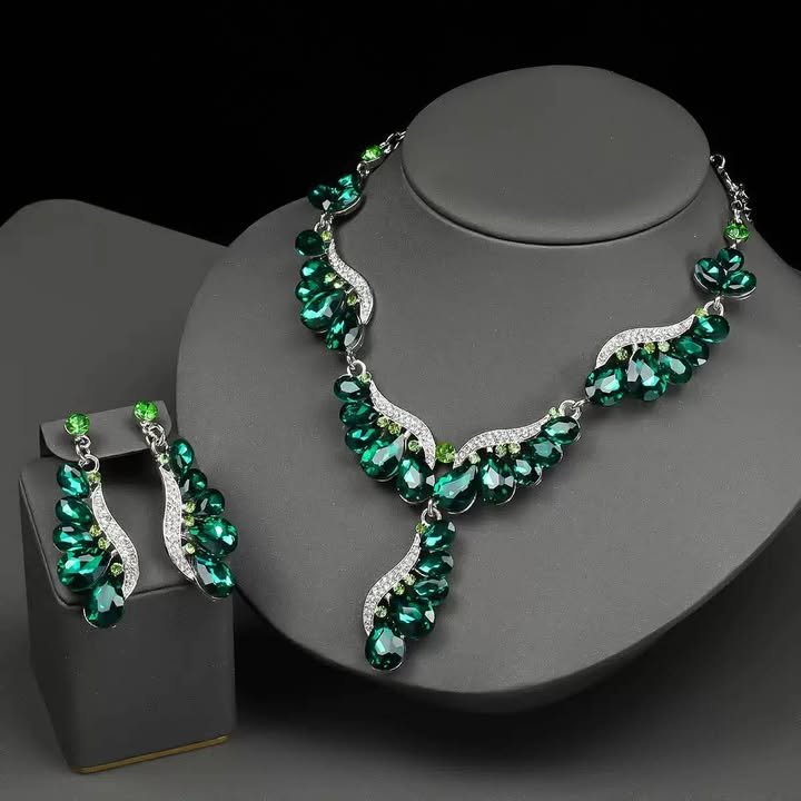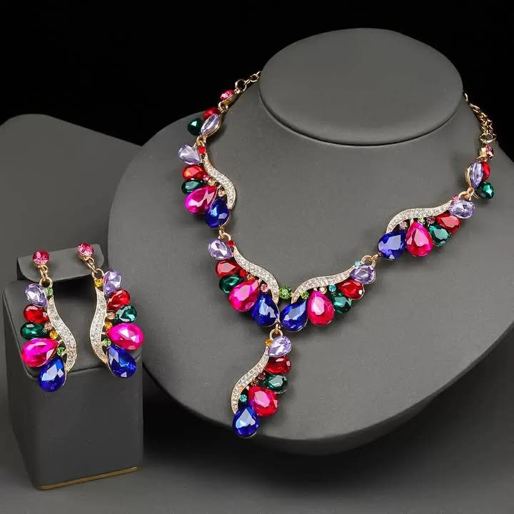👑 Luxury Diamond Cut Stone Necklace Set with Earrings 💫